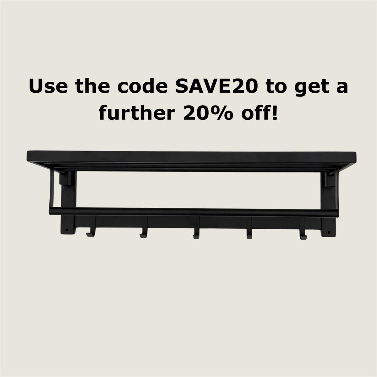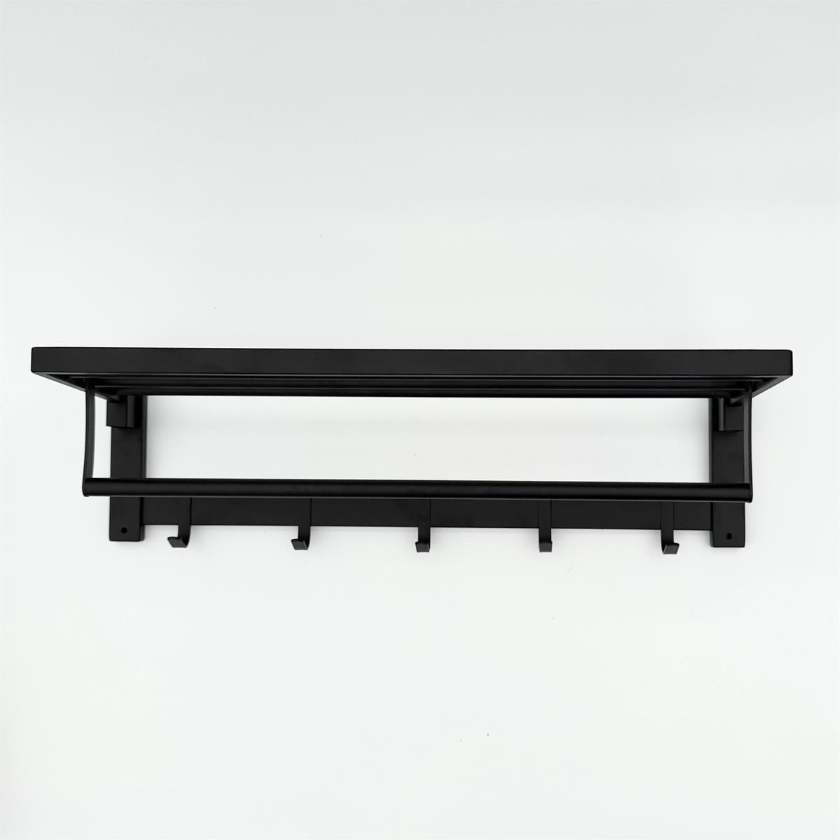 Foldable Towel Rail with Hooks - Matte Black Stainless Steel