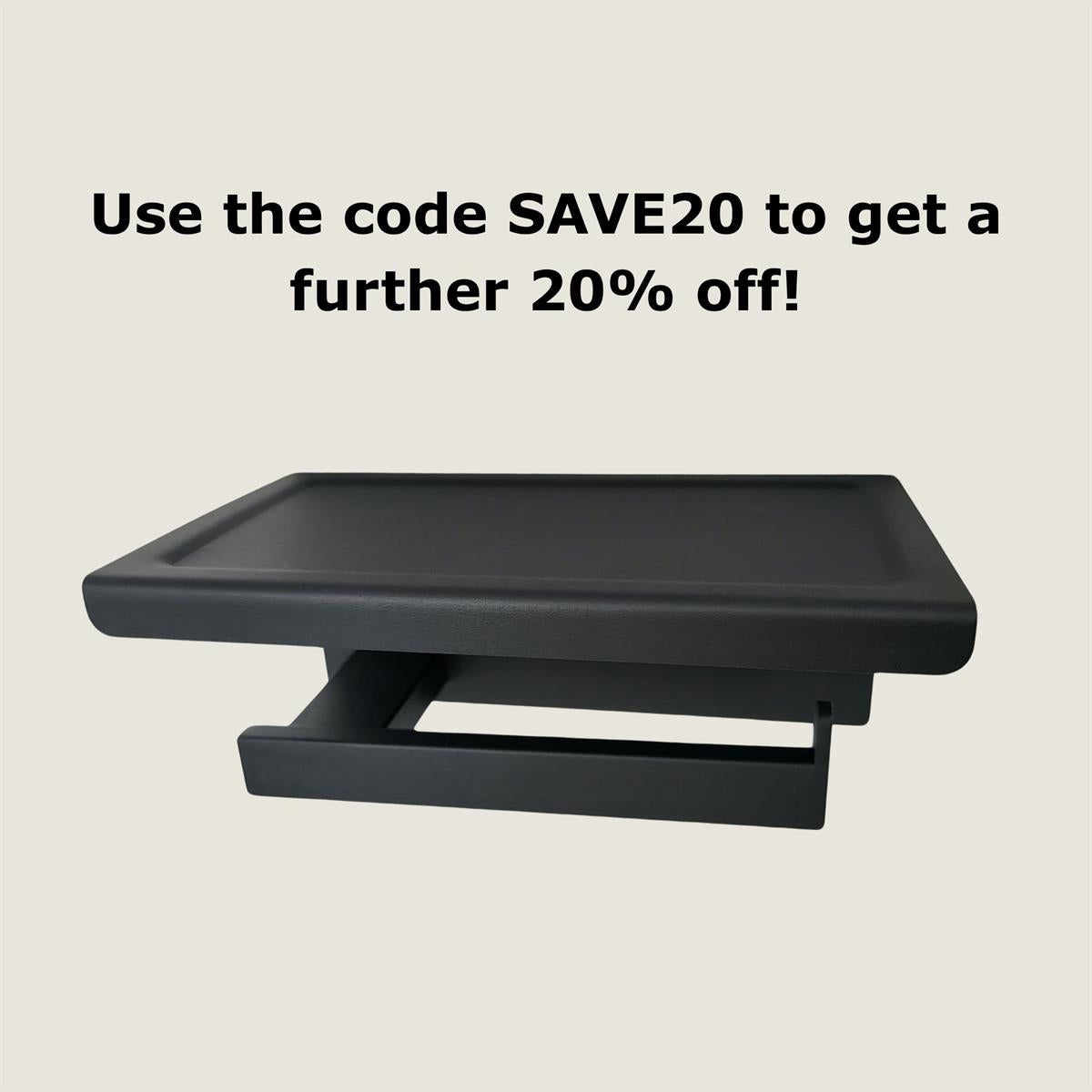 Elevate your bathroom with our matte black toilet paper holder featuring a built-in tray, perfect for storing your air freshener, diffusers, or even holding your phone while you take care of things.